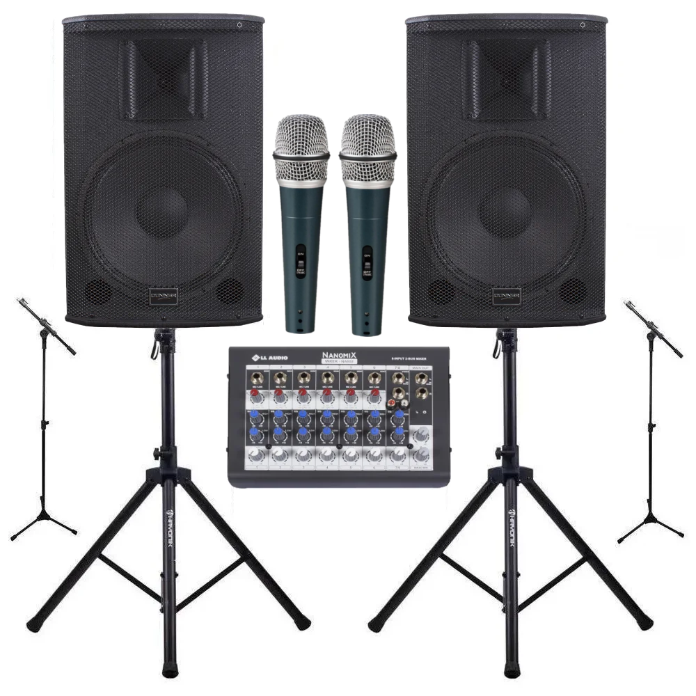 Kit Igreja Profissional Donner Saga 12 polegadas ativa + passiva + pedestais + Mesa + Microfones