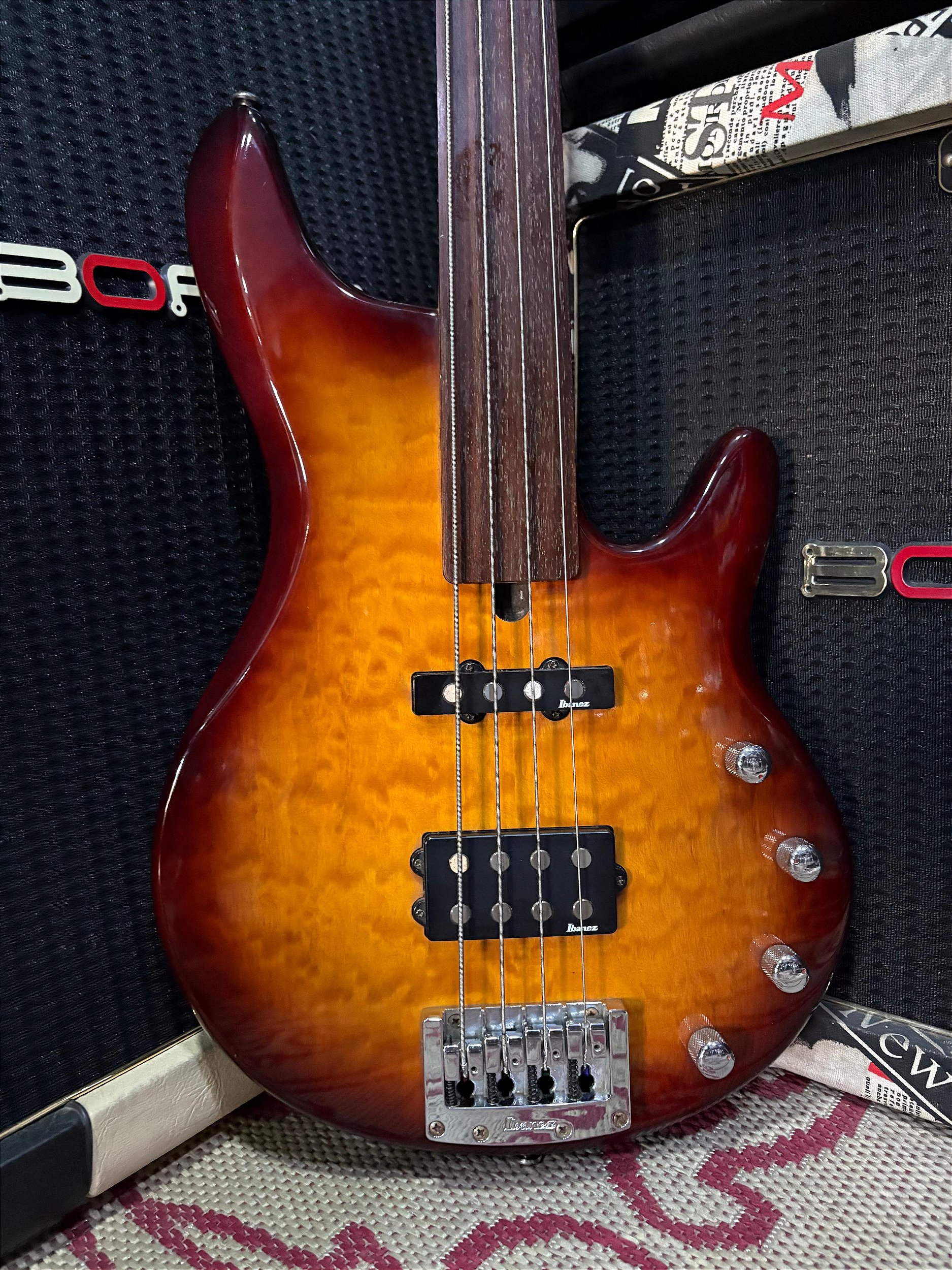 Fabricado na Coreia, o instrumento segue a tradição da Ibanez em produzir baixos confortáveis e versáteis. O braço fino e a escala sem trastes permitem slides suaves e maior expressividade na execução, enquanto o circuito ativo oferece maior controle de equalização e definição sonora.