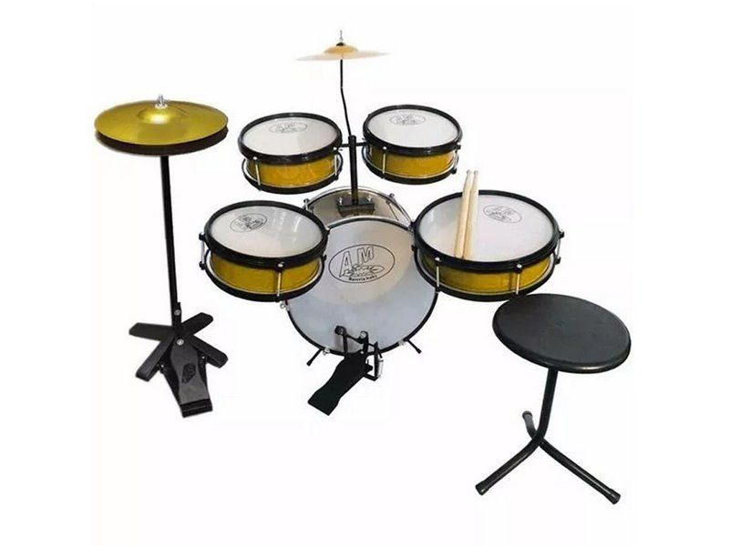 Acompanha kit completo com: prato, baquetas, pedal, banco e manual de instruções. O produto é indicado para crianças de 3 a 8 anos. A Bateria não é classificada como brinquedo, é uma bateria profissional para criança. Composta por: Tom 8”, Bumbo 14” Surdo 10” Caixa 8”, Prato de ferro pintado 10” e Chimbal.