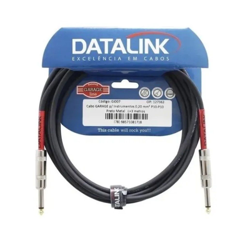 Os cabos Datalink linha Garage têm excelente custo-benefício e são utilizados para interligar instrumentos musicais (guitarras, violões, baixos, teclados, etc.) ao amplificador ou outros equipamentos como mesa de som, amplificadores e etc.