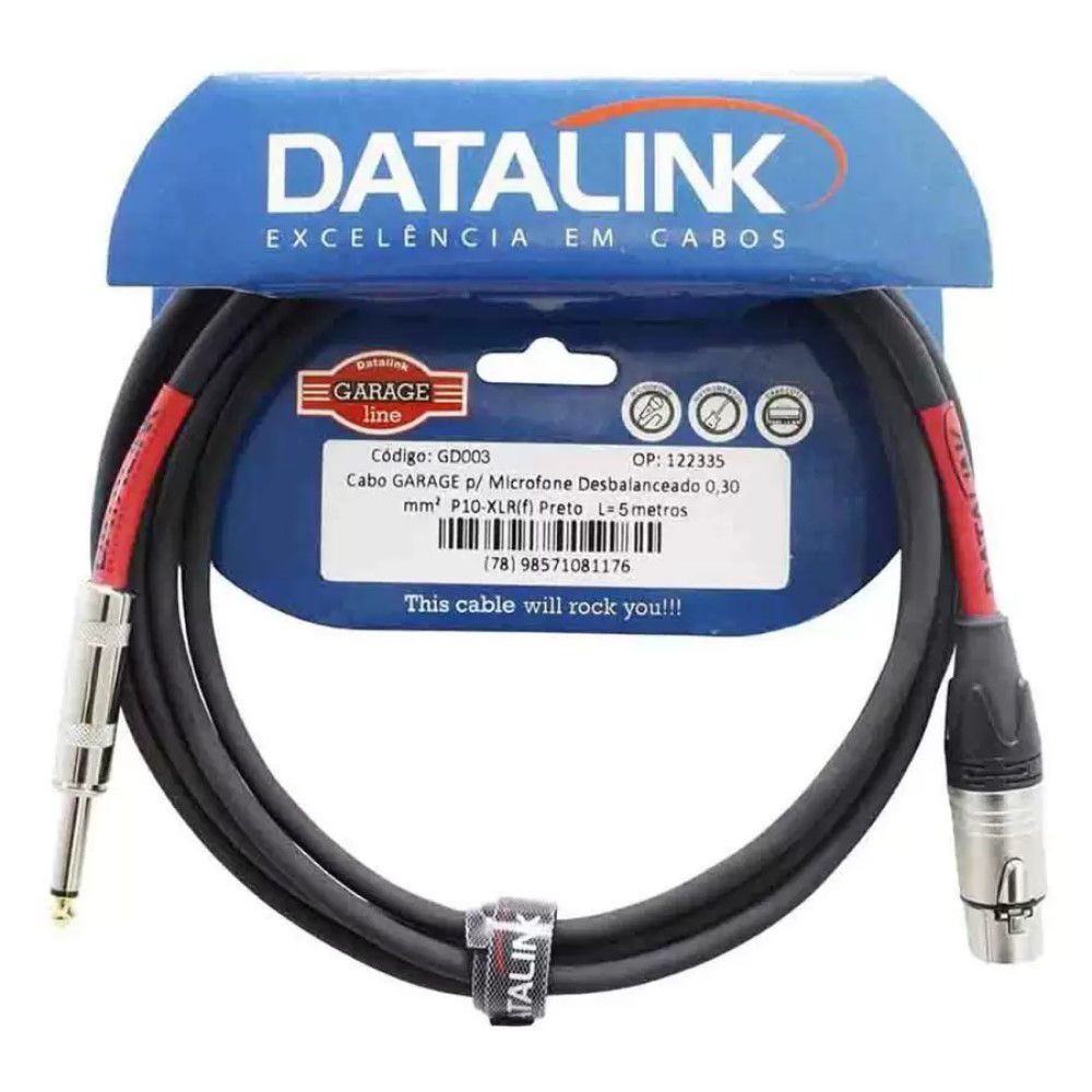 Cabo Datalink Garage Microfone 0,30 mm² P10-XLR(f) Preto L=5 mt GD003