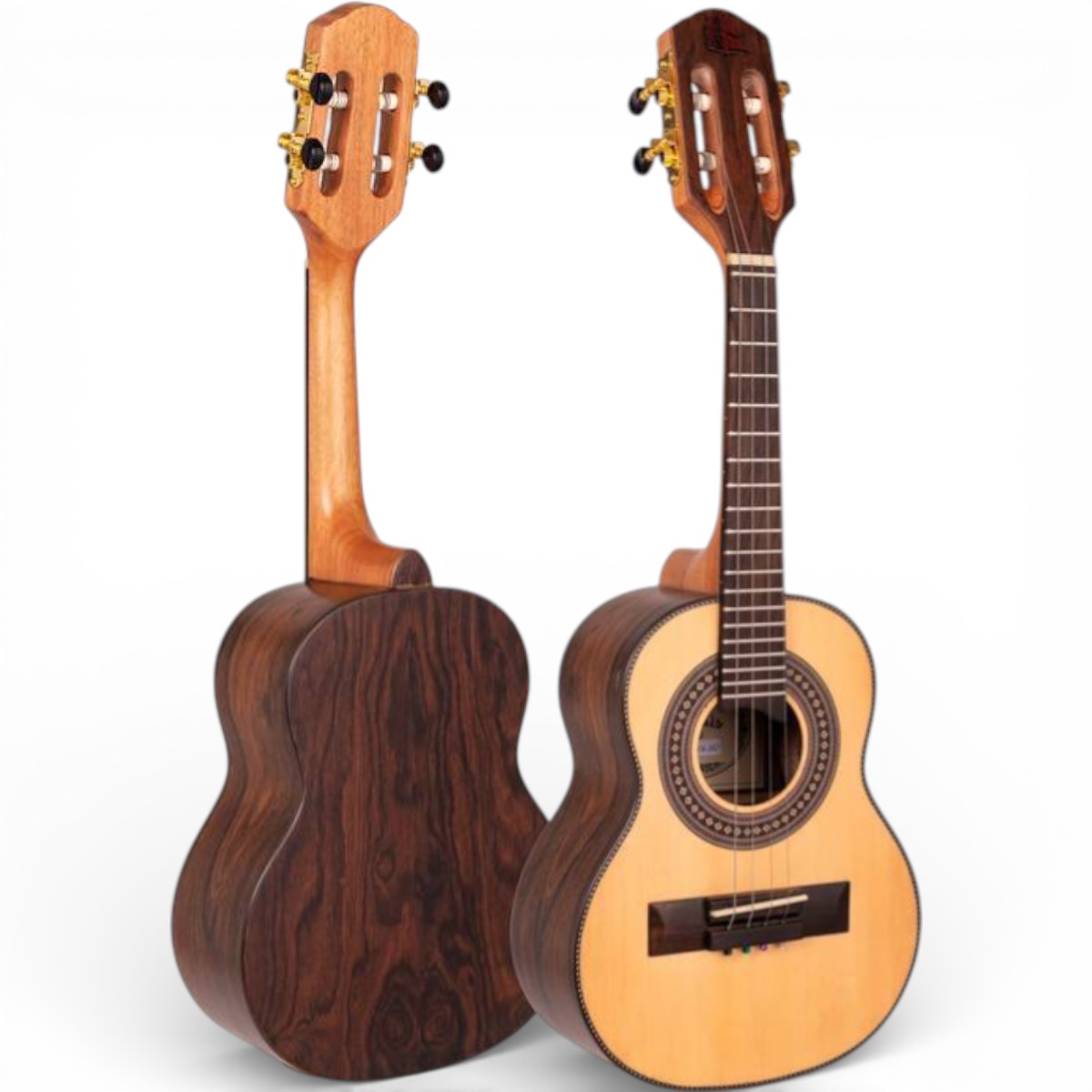 O Cavaco Marques CA-210 Tradicional Maciço Louro Preto Natural Fosco Passivo é construído com madeiras selecionadas que impressionam tanto no visual quanto na resposta sonora. O tampo em Pinho Alemão maciço garante excelente projeção e definição, enquanto o corpo em Louro Preto entrega graves encorpados, médios equilibrados e agudos claros, formando um timbre rico e cheio de personalidade.