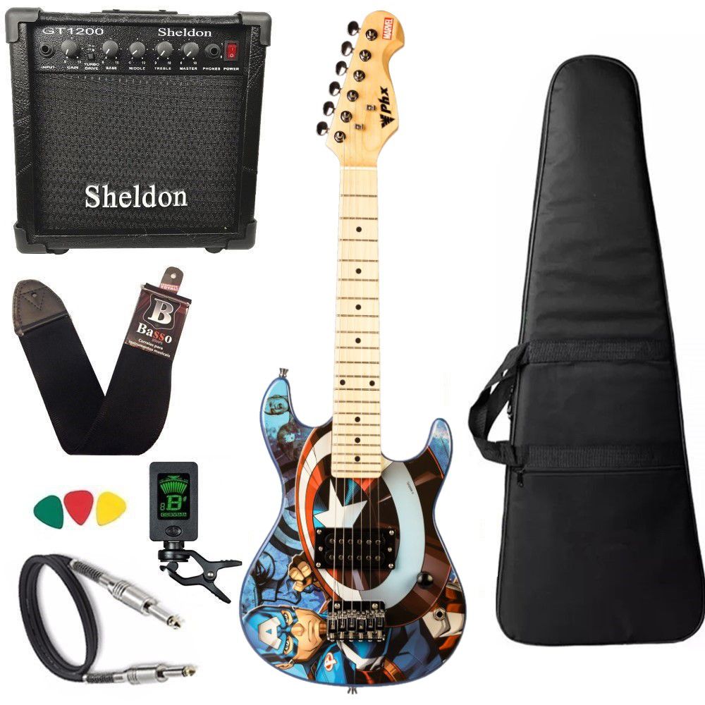 Guitarra Phx Marvel Infantil Criança Capitao América.