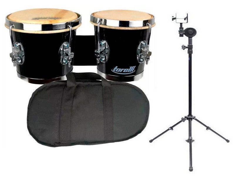 Kit Bongo Torelli Tb010 6x7 Madeira Preto Suporte + Capa