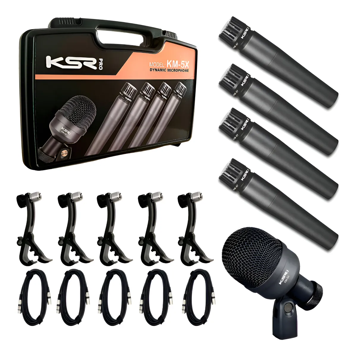 O Kit de 5 Microfones KSR KM-5X é uma solução completa para captação de instrumentos de percussão, sendo ideal para baterias, bongôs e diversos sets percussivos. Desenvolvido para oferecer boa resposta sonora e resistência, o conjunto atende bem a ensaios, apresentações ao vivo e gravações.