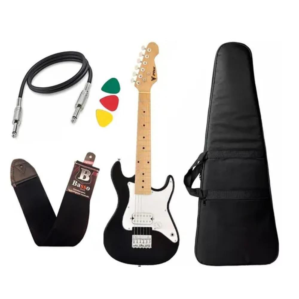 Kit acompanha: Guitarra, Capa, Palhetas, Cabo e Correia.