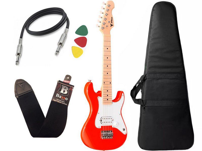 Kit acompanha: Guitarra, capa, cabo , correia e palhetas.