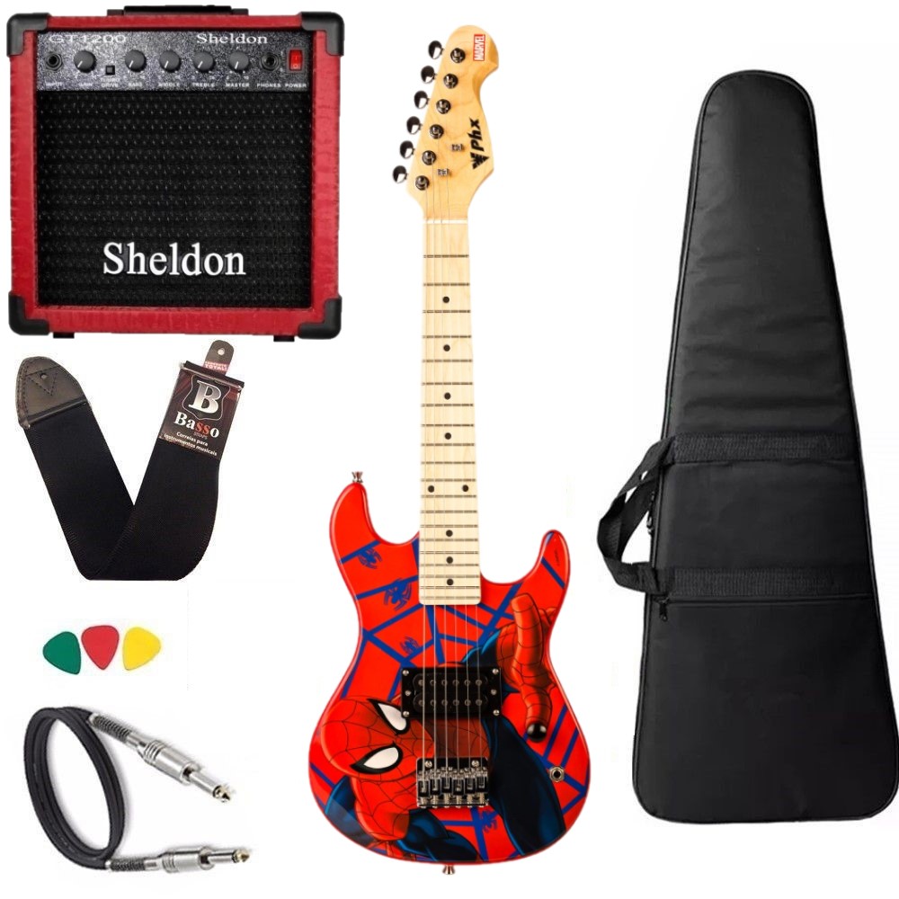 Kit Guitarra Phx Marvel Infantil Criança Homem Aranha + Amplificador