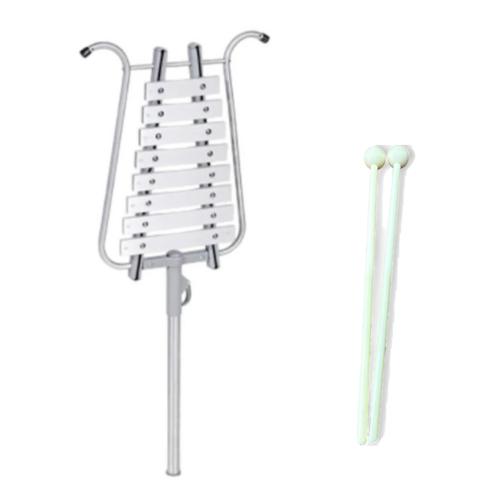 Com 8 teclas em alumínio polido, de 25mm de largura e 9,53mm de espessura, oferece toque confortável, durabilidade e sonoridade clara. Afinada em A=440Hz, possui extensão de notas Dó/C5 a Dó/C6, cobrindo uma oitava completa no sistema diatônico.