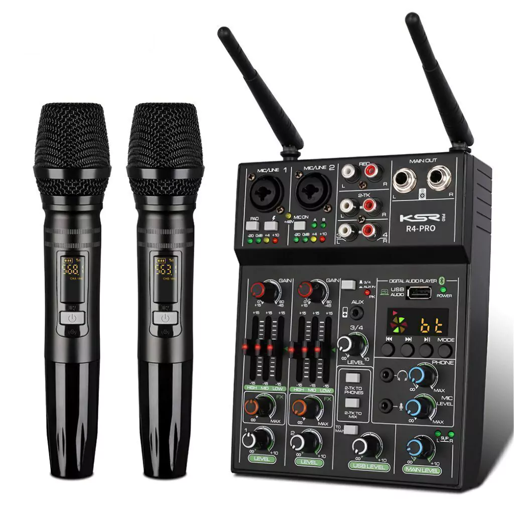 Mesa Kit R4 Pro C/ Microfone Sem Fio Duplo KSR Uhf 34 Canais