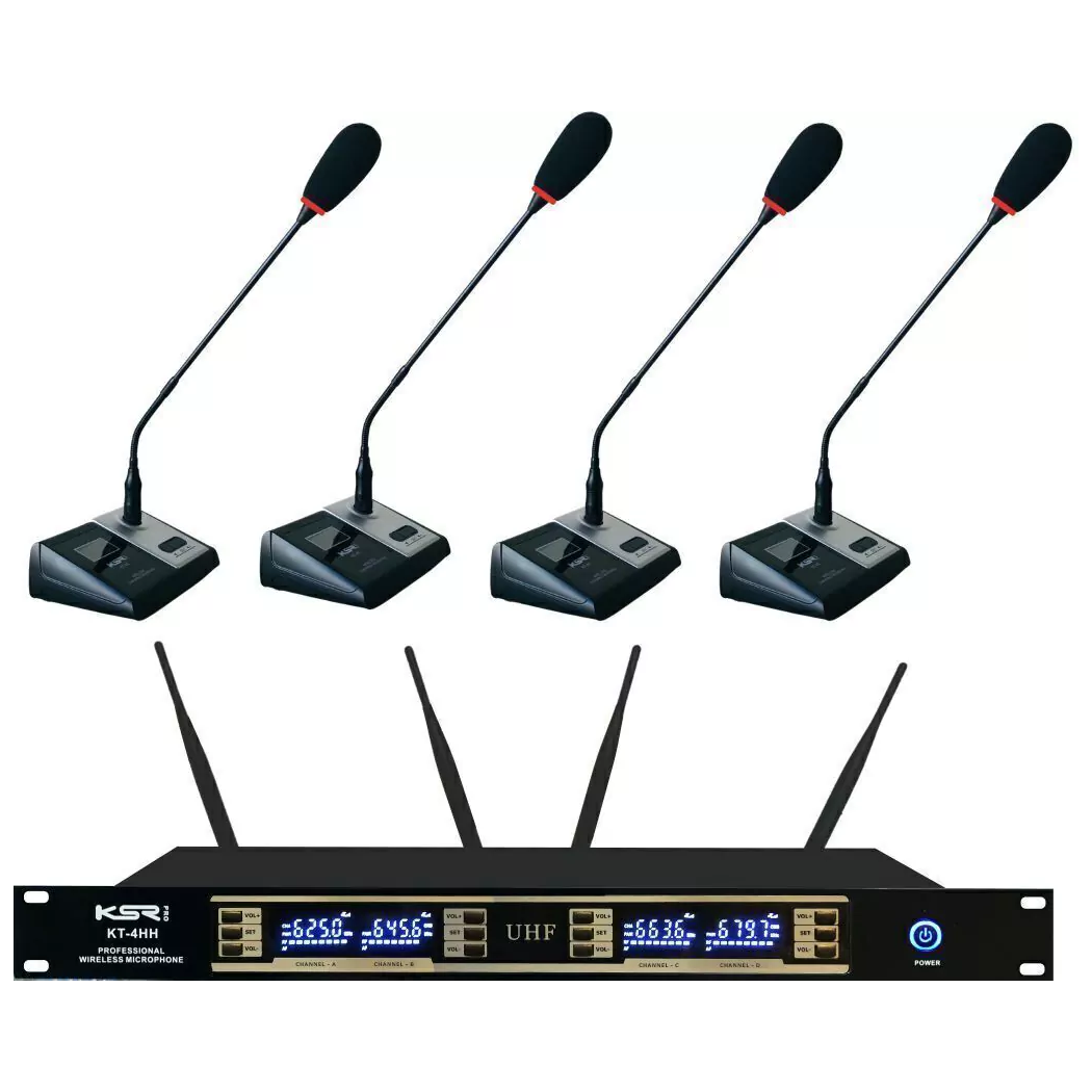 O Microfone Sem Fio KSR KT-04C é um sistema profissional quadruplo desenvolvido para aplicações que exigem captação clara de voz e organização no uso de múltiplos microfones, como igrejas, auditórios, conferências, reuniões e eventos. Com quatro microfones gooseneck e transmissão UHF estável, o sistema oferece praticidade, mobilidade e excelente desempenho.