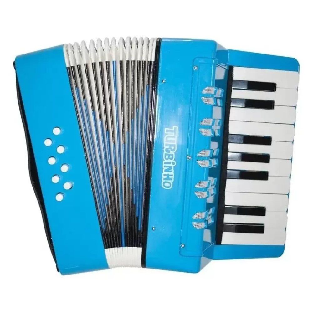 É ideal para as crianças iniciarem as suas primeiras notas e acordes, o Acordeon Infantil Turbinho com 8 baixos e 17 teclas é perfeito para os pequenos entrarem no meio musical. Leve e pequeno mas completo pode ser transportado para todos os lugares e fazer a alegria de toda a família.