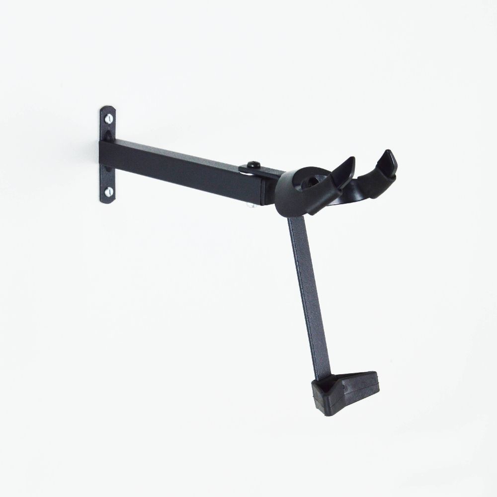 Suporte de parede para violão, guitarra, baixo ou cavaquinho com apoio para o braço do instrumento.